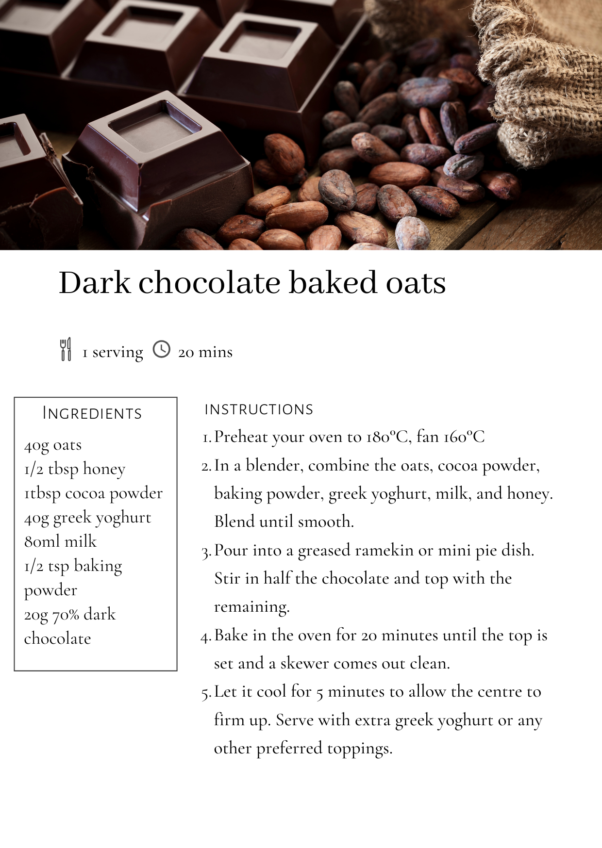 Dark chocolate baked oats